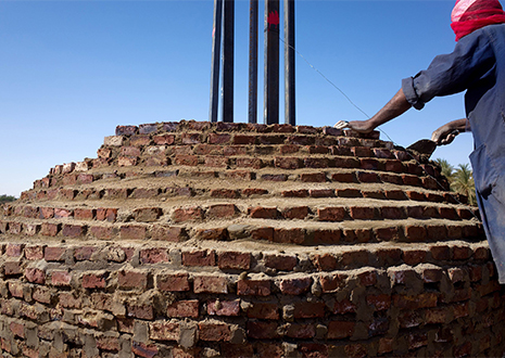 the "rajul al-thalj" (snowman) is made of sun-dried mud bricks and finished with white plaster. it is an attempt to reverse the very characteristics of a popular representation in terms of aesthetics, materiality and performance. the monumental recreation of an abstracted snowman in a saharan context performs no ritualistic or ceremonial function. it rather pays reverence to the birth of anthropomorphic figuration and the cultural environments where human ideotypes begin to appear.