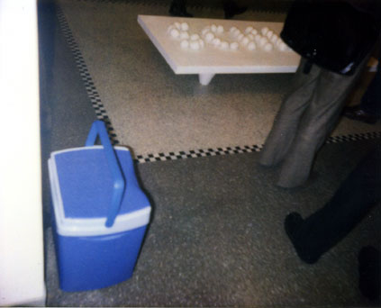 anlässlich der performance vom 19. dezember 2004 wurde das zweite gipsobjekt in der ausstellung "weisse wunderware schnee" mit schneebällen beschrieben. die wörter SCHLAF und SCHNEE verweisen auf bilder von reinheit und unschuld. sie wecken erinnerungen an winterbilder aus frühester kindheit. durch einbezug des betrachters in den künstlerischen prozess wird veränderung und vergänglichkeit zugleich spür- und sichtbar gemacht.